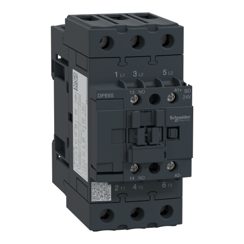 Schneider Electric DPE65BD - IEC contactor,Easy TeSys DPE,nonreversing,65A,3P,40HP at 480V AC,24VDC coil