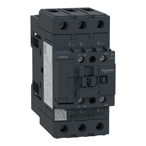 Schneider Electric DPE50BD - IEC contactor,Easy TeSys DPE,nonreversing,50A,3P,30HP at 480V AC,24VDC coil