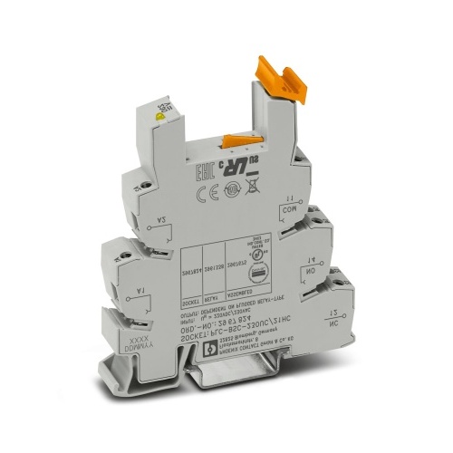 Phoenix Contact 2967824 A 14mm PLC basic terminal block suitable for handling high continuous currents is available. This terminal block features a screw connection and comes with one changeover contact, designed to be mounted on DIN rail NS 35/7,5. It can handle an input voltage of either 230V AC or DC power.