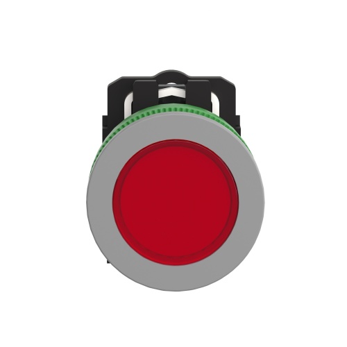 Schneider Electric XB5FVB4C0 - Pilot light, Harmony XB5, red flush mounted, gray bezel, 30mm, universal LED, plain lens, 24V