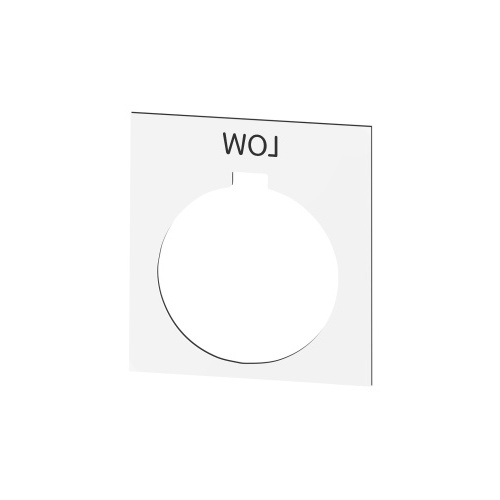 Schneider Electric 9001KN215WP - Legend, Harmony 9001K, Harmony 9001SK, 30mm, plastic, white with black letters, 44,5mm square, marking LOW, 30 mm