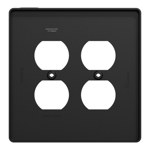 X Series 2 Gang Mid-Size Plus Duplex Outlet Wall Plate Matte Black