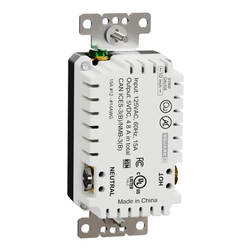 Schneider Electric SQR55141BK - USB charger + socket-outlet, X Series, 15A socket, 4.8A USB A/A, duplex, tamper resistant, black, matte finish