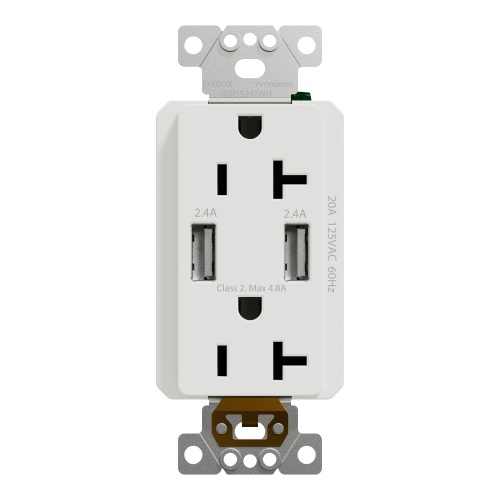 X Series 20A 125V Tamper Resistant USB A/A 4.8A Outlet Matte White