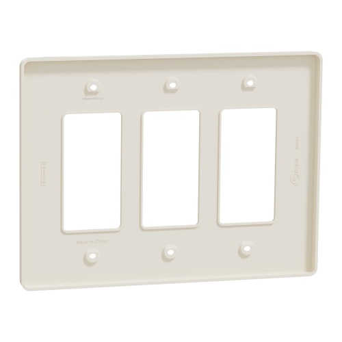 Schneider Electric SQWS141003LA - Cover frame, X Series, 3 gangs, screw fixed, mid sized plus, light almond, matte finish