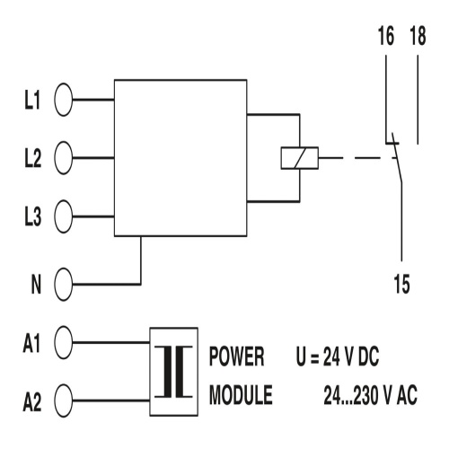 Phoenix Contact 2885278 A monitoring relay designed to monitor 3-phase voltages within a range of 280-520V AC can be configured as a window type unit connected to the neutral conductor. Additionally, this device allows for the selection of supply voltage through its power module and features a single changeover contact.