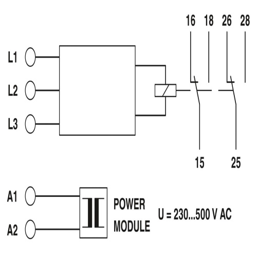 Phoenix Contact 2867979 A monitoring relay can monitor and detect various conditions in a 3-phase power system, including undervoltage, window limits, phase sequence errors, phase failures, and asymmetries. The relay's detection capabilities are controlled through a power module that allows for the selection of specific voltages to monitor, typically within the range of 350-650 V AC, thereby enabling precise fault detection and isolation in the system.