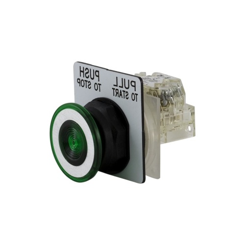 This Harmony 9001SK, modular green push button has 2 positions and operates with a stay-put mechanism