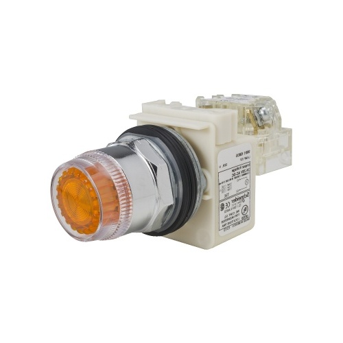 This illuminated push button with integral LED and full guard provides an ergonomic and visual interface for controlling your machines