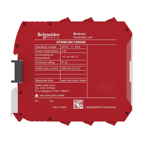 Schneider Electric XPSMCMC10804B - Safety controller, Modicon MCM, 8 inputs 4 outputs, combined with backplane expansion connector, screw
