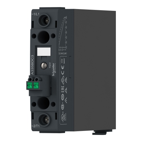 Schneider Electric SSD1A335M7C3 - single phase panel, Harmony Solid State Relays, 35A, DIN rail mount, zero voltage switching, input 90…280 V AC DC, output 48...600 V AC