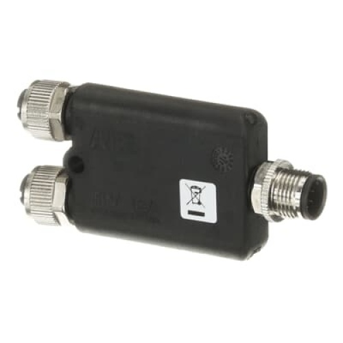 Tina 12A is a connection block for serie connection of two DYNlink devices with M12-8 connectors, e.g