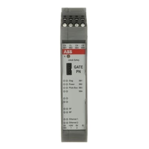 ABB 2TLA020071R9300 - Gateway for 2-way communication between the Pluto bus and Ethernet. Ethernet protocol PROFINET.With the use of a Gateway device, Pluto can communicate with other control systems and thereby form a part of a larger network. The unit has a common interface with Pluto, i.e. the same cabling and the P... Show More