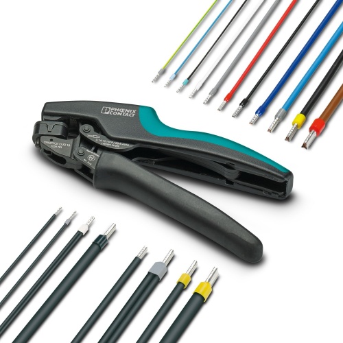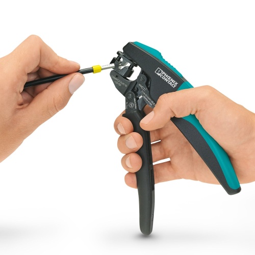 Phoenix Contact 1031721 Crimpers come in contact connection types with insulated and uninsulated ferrules adhering to standards like DIN 46228-1 and UL 486F for specifications of various forms. The pliers support cross sections ranging from 0.14 mm2 to a maximum of 10 mm2, suitable for twin connectors up to 2 x 4 mm2, featuring an automatic adjustment mechanism with rotating dies and methods for inserting ferrules both laterally and frontally.