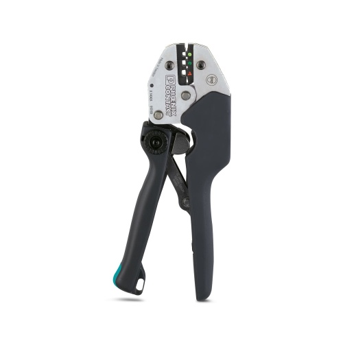 Phoenix Contact 1212727 Crimpers with compact handles and pliers specifically designed to grip insulated cable lugs in light green and red colors are available. These devices typically feature multiple marked die stations, allowing for adjustable locking mechanisms that can be unlocked. Additionally, they often include a lateral entry option for enhanced flexibility.