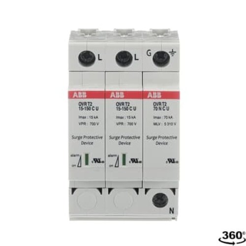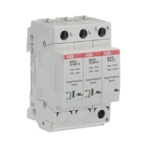 ABB OVRT22N15150PU - Surge Protective Device, 240/120V Split Phase, 3 Pole, 4 Wire