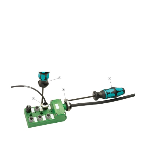 Phoenix Contact 1212315 The tool features a torque screwdriver setting at 2.5 Nm and comes equipped with a 4 mm hexagonal drive suitable for securing the pressure nut on the connector hood.