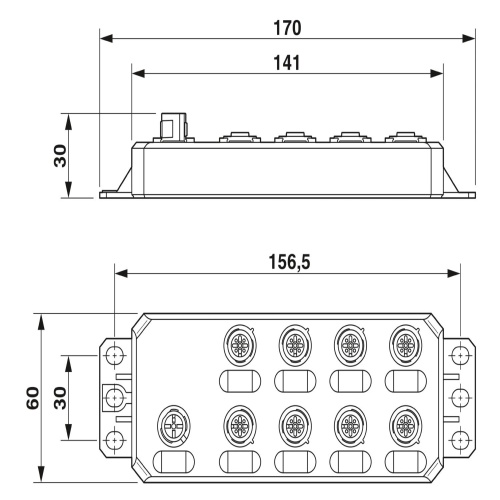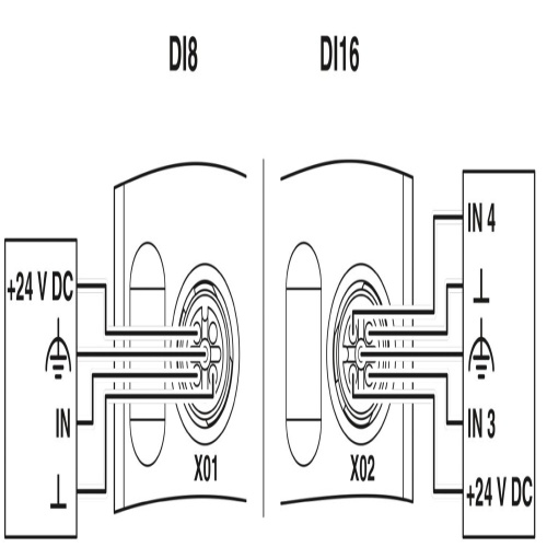Connection of up to 16 inputs with M12 connectors (A-coded, 5-pos.)