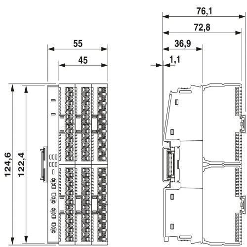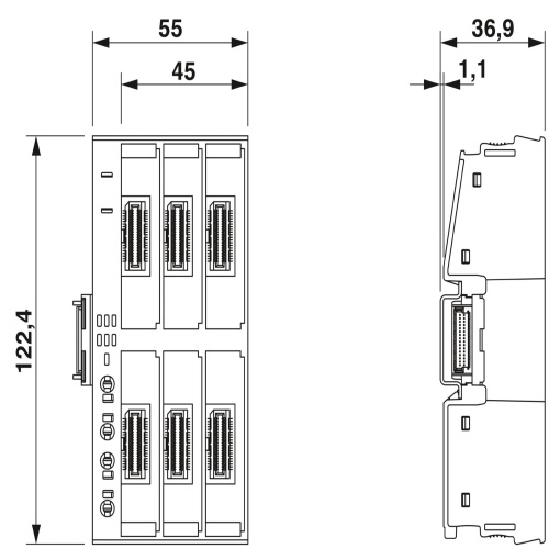 Phoenix Contact 1088136 The Axioline F has a backplane with 6 slots for Axioline Smart Elements, featuring a local bus transmission speed of 100 Mbps and providing a degree of protection equivalent to IP20.
