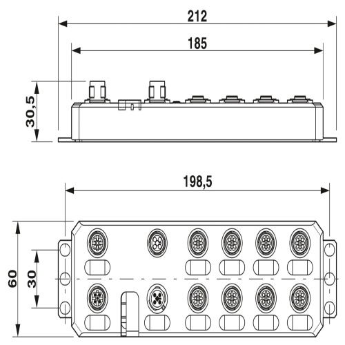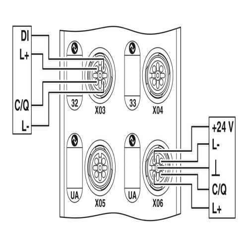 Connection of IO-Link ports using M12connectors (A-coded, 5-pos.)