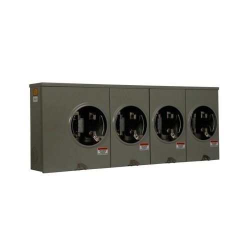 Eaton 1004405ACH - meter socket, Multiple position horizontal ganged sockets, 100A, Overhead/underground, 3-5/16 hub opening, 3-5/16 hub cover plate, #6-250 kcmil, Four-jaw, Single-phase, #8-2/0 AWG, Horn bypass, Sockets:4, Three-wire, Ring, 600V