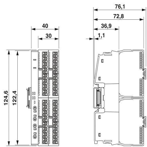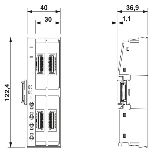 Phoenix Contact 1088135 The Axioline F board features a backplane with four slots designed to accommodate Axioline Smart Elements, supporting a local bus transmission speed of 100 Mbps and boasting an IP20 degree of protection.
