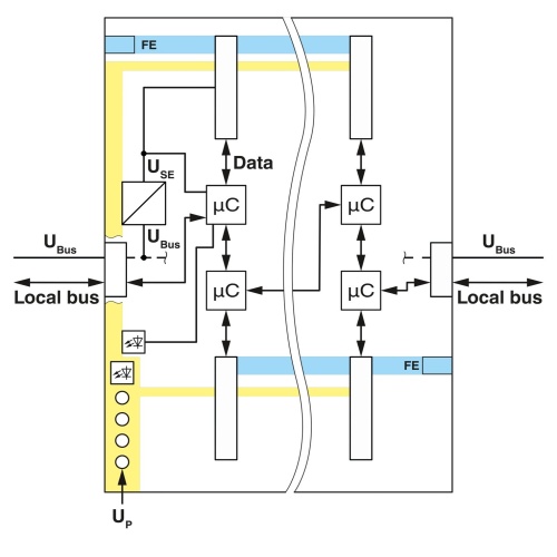 Supply feed-in for the peripheral supply UP for the plugged in Axioline Smart Elements