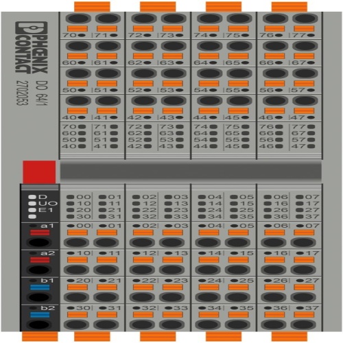 Phoenix Contact 2702053 The Axioline F is a digital output module that features 64 digital outputs, operating at 24V DC with a maximum current draw of 500 mA. The module utilizes a single-conductor connection technology and transmits data at a local bus speed of 100 Mbps, providing an IP20 level of protection against dust and water ingress, complete with a base module and Axioline F connectors.
