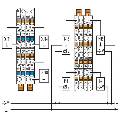 16 digital inputs in accordance with EN 61131-2 type 1 and type 3