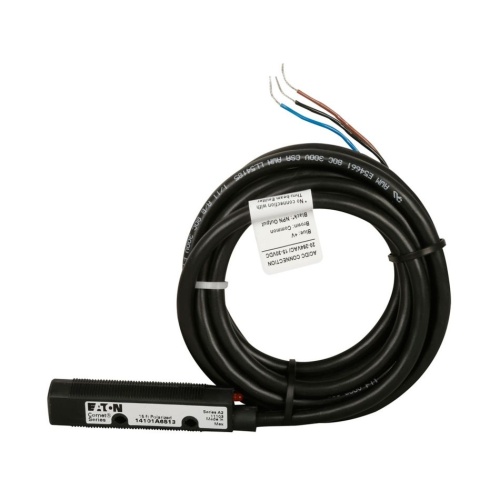 Eaton 14101A6513 - Comet 18mm tubular photoelectric sensor, Forward Viewing, Sensor dist 15 Ft., 300 mA max AC L1 switched/DC NPN open coll, 300 mA AC/DC at 20-264Vac/15-30Vdc, 6.6 Ft.(2m) Cable, Polarized Retroreflective, 6.6 Ft.(2m)