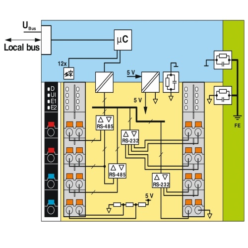 Phoenix Contact 2702006 The Axioline F communication module features a range of interface options, including RS-232, RS-485, and RS-422, and is available with extreme conditions capabilities that support high-speed transmission on the local bus up to 100 Mbps, while also boasting an IP20 degree of protection that includes the base module and Axioline F connectors.