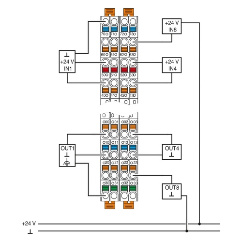 8 digital inputs in accordance with EN 61131-2 type 1 and type 3