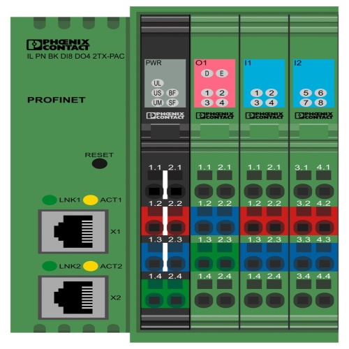 IL PN BK DI8 DO4 2TX-PAC Phoenix 2703994 I/O component I/O,Input,Output,Bus PROFINET 100 Mbps RJ45 socket, auto negotiation,Inline data jumper,Spring-cage connection,Inline connector PLC & IO