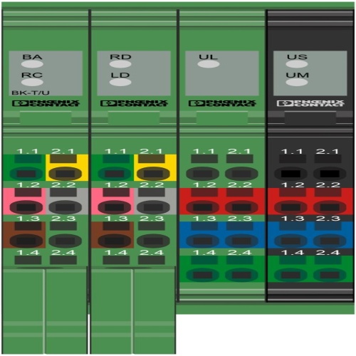 An Inline station can be supplied with all of the required 24 V voltages for low-level signals