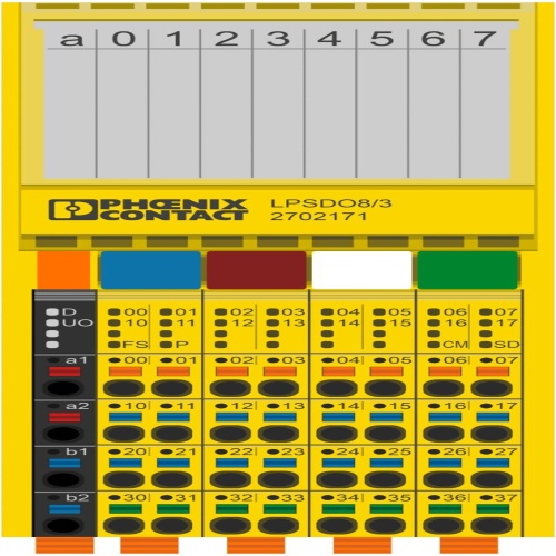Phoenix Contact 2702171 The Axioline F is a digital output module that incorporates functional safety features as part of the SafetyBridge solution, allowing for specific configurations with either 4 digital outputs for 2-channel assignment or 8 digital outputs for 1-channel assignment. The device has two analog inputs and is designed to meet an IP20 degree of protection standard.