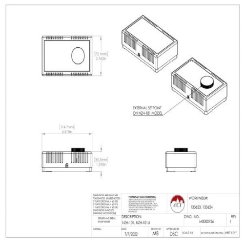 ACI 133623 Humidstat, Room, External Setpoint Dial, SPDT, NEMA 1