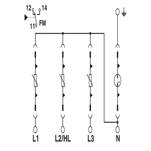 Phoenix Contact 2910360 A four-channel surge protective device is designed to protect a 120/208 V wye three-phase AC system with a 4-wire configuration including ground from voltage surges and spikes, featuring remote indicator contact for easy monitoring of its status.