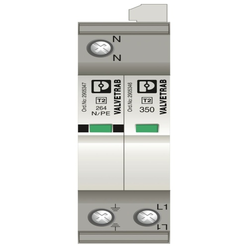 VAL-SEC-T2-1S-350-FM Phoenix 2905333 Surge arrester 240 VAC Plug-in/screw connection via COMBICON,Screw connection,Fork-type cable lug Type 2 surge arrester Surge Protection