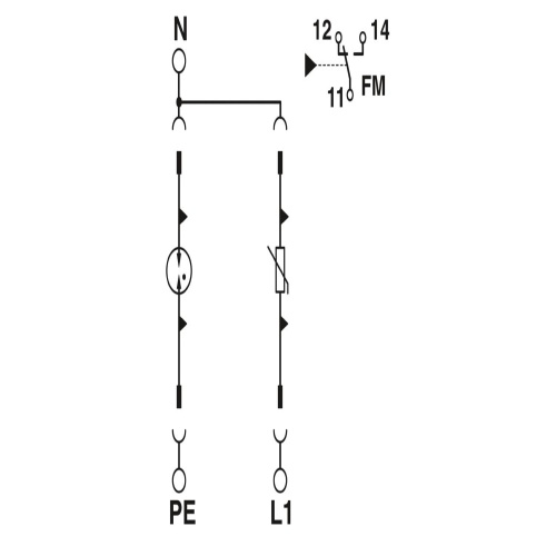 Phoenix Contact 2905333 A plug-in surge arrester suitable for 1-phase power supply networks featuring a three-conductor system of live, neutral, and earth lines, with remote indication through a separate contact that signals when the surge arrester is activated.