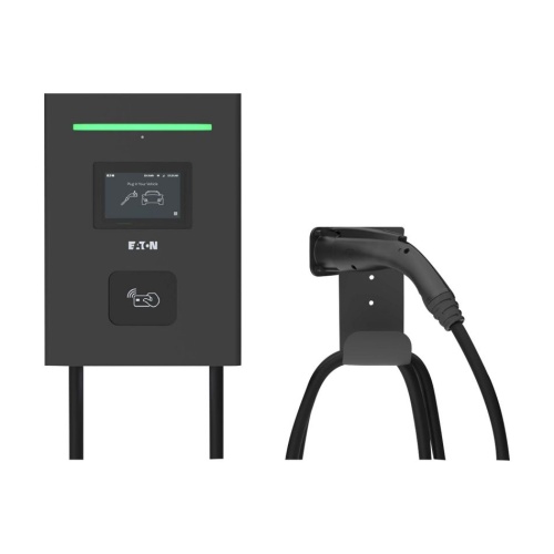Eaton GMEV80CME1-WC - Commercial EV Charger, AC level-2, 19.2kW at 240Vac, 80A, Wi-Fi/Ethernet, OCPP 1.6J, 25' cord-set with J1772 connector, Touchscreen LCD, Metal Enclosure, RFID, QR Code, NEMA 3R, Energy Star