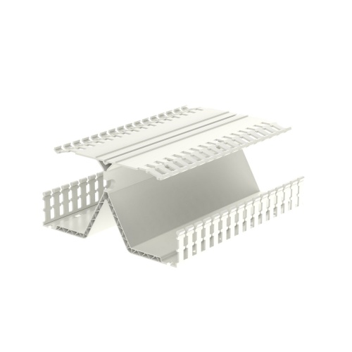 2-Channel Wiring duct with a hinged and flexible cover that allows you to mount DIN Rail and components on top of the duct to maximize space