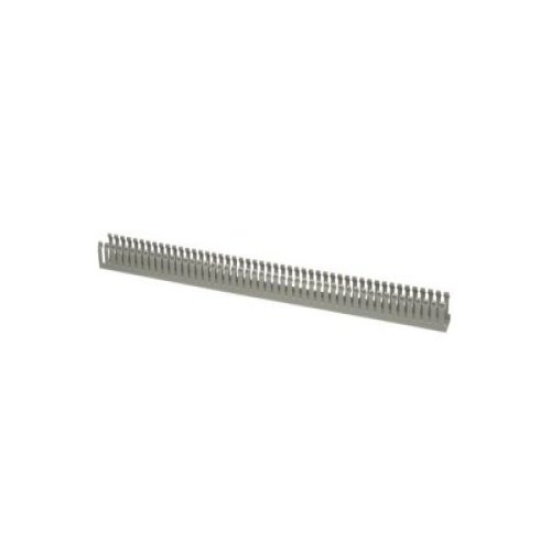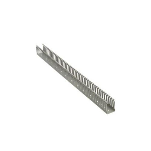 Panduit MC37X75IG2 The MC37X75IG2 Panduct Lead-Free PVC Narrow Slot Wiring Duct is 37.1 mm x 72.4 mm (1.46" x 2.85"). It features a narrow slot/finger design that closely matches the spacing of high-density components. Upper and lower scorelines allow for easy finger/sidewall section removal. UL 94 flame class of V-0 with a UL recognized continuous-use temperature up to 122°F (50°C). Mounting holes provided. Lead-free PVC. Cover included. Color - International Gray. 20 Meters (10 sticks each) - Bases & Covers per package.