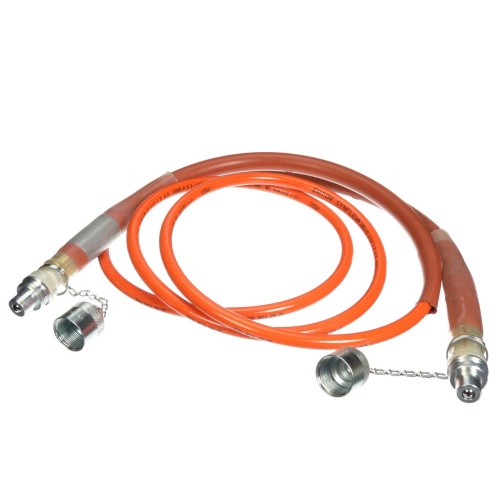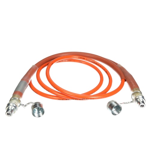 Electrically non-conductive 10' hose, supplied pre-filled with hydraulic fluid for fast start up.