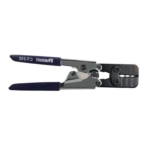 Panduit CT-310 Blue handle tool crimps Panduit #22 – 10 AWG heat shrink insulated terminals, disconnects, and splices.