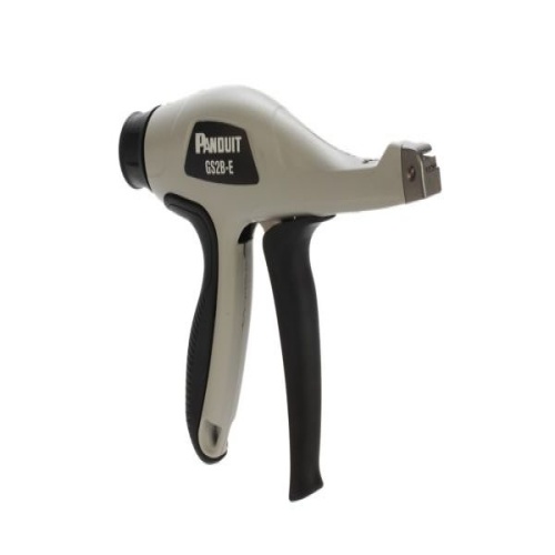 Panduit GS2B-E Panduit offers the most preferred hand-operated tools in the industry. The GS2B-E Ergonomic Cable Tie Hand Tool is easy to operate and has tool-controlled tension that provides a flush cut-off and speeds up installation to lower installed cost. Promotes worker safety, reduces downtime, and increases productivity. For Subminiature, Miniature, Intermediate, and Standard Cross Section Cable Ties. Black trigger handle and selector knob with light gray metal housing. Weight, 13.55 ounces (385 grams).