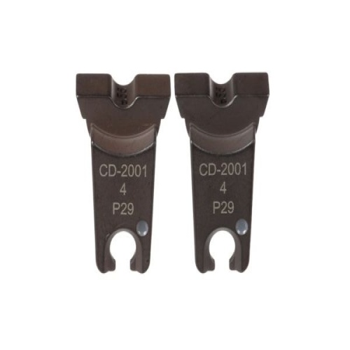 Panduit CD-2001-4-SET The CD-2001-4-SET Crimp Dies provide circumferential crimp results in terminations with premium electrical and mechanical performance. Color-coded to provide easy matching on connectors while an embossed die index number on the connector barrels provide post crimp inspection. The part number is permanently marked on the crimping die for easy identification and used with the CT-3001/ST and CT-3001/CCP series tools.