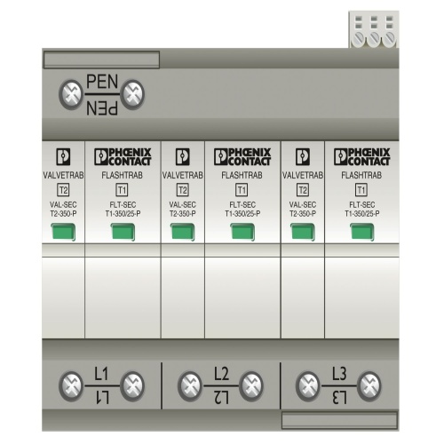 FLT-SEC-T1+T2-3C-350/25-FM Phoenix 2905469 Arrester combination 240/415 VAC Plug-in/screw connection via COMBICON,Screw connection,Fork-type cable lug Type 1+2 protective device combination Surge Protection