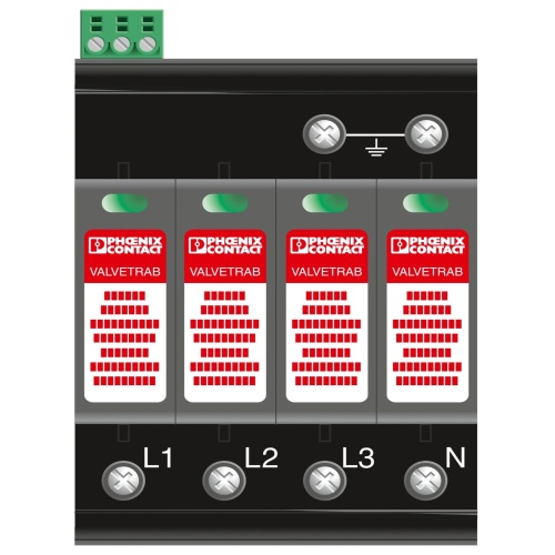 Phoenix Contact 2800644 A plug-in varistor-based lightning current arrester is designed to protect 3-phase TN-S power supply networks that use separate neutral and earth (N and PE) conductors, typically found in 5-conductor systems including live lines (L1, L2, L3), N, and PE. This type of arrester is suitable for Lightning Protection Levels III and IV and features a remote indication contact to signal when protection is required or has been activated.