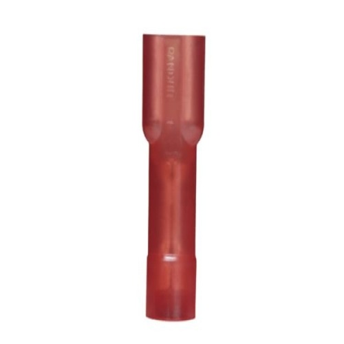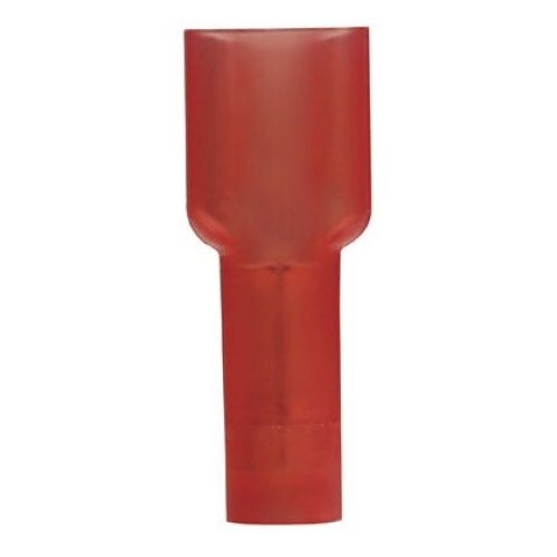 Panduit DNG18-250FB-M The Supra-Grip™ female disconnect is made of brass and is tin-plated. It is fully insulated in red nylon. It has a tab size of 0.250 x 0.032 (6.3 x 0.8 mm) and supports a wire range of 22-18 AWG (0.5-1.0 mm²). It is 0.93" (23.6 mm) long and 0.35" (8.9 mm) wide. The disconnect has a double crimp funnel entry barrel configuration and a butted seam barrel with an integrated metal insulation grip. It comes in boxes of 1000.