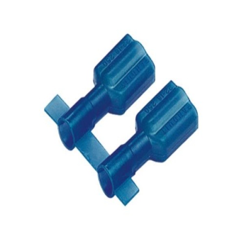 Panduit DNF14-188FIB-3K The vibration resistant female is made of brass and is tin-plated. It is fully insulated in a blue, standard receptacle housing. It has a tab size of 0.187 x 0.020" (4.8 x 0.5 mm) and supports a wire range of 16-14 AWG (1.5-2.5 mm²). It is 0.78" (19.8 mm) long and 0.29" (7.4 mm) wide. The disconnect has a funnel entry barrel configuration and a butted seam barrel. It comes in reels of 3000 pieces.